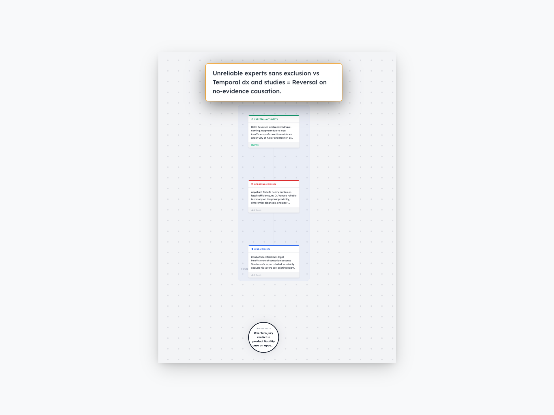 - Case corpus with: Trial transcript, expert testimony (plaintiff’s causation expert), medical records showing comorbidities, company’s risk analysis